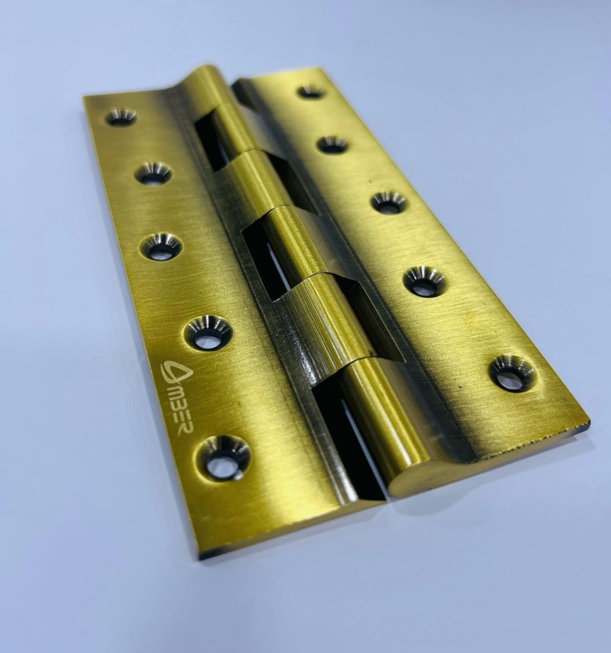 Amber Brass Hinges 5 inch | Super 5inch x 1.1/8 x 5/32 Brass Antique Premium Hinges | Soft Close Smooth Hinges (Pack of 6) | Antique Screws Included