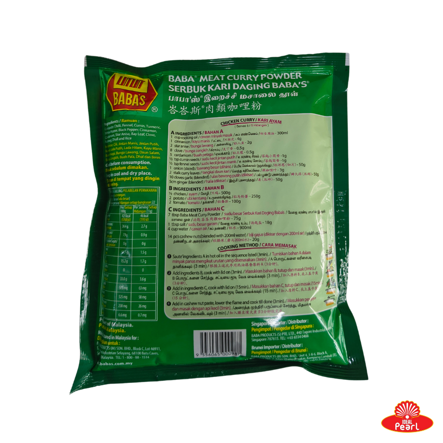 BABA'S Meat Curry Masala 250g is a rich, aromatic blend of premium spices specially crafted for authentic meat curry dishes. It delivers deep flavor, vibrant color, and a traditional taste without added preservatives or coloring. Ideal for mutton, beef, or lamb curries.