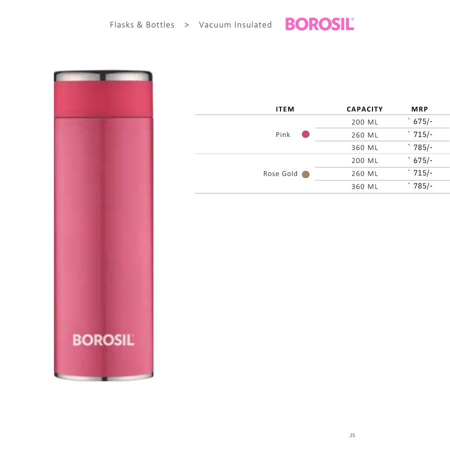 The Borosil Hydra Travelsmart Flask is a stylish and practical vacuum-insulated bottle designed to keep your beverages at the desired temperature while you're on the move. Available in capacities of 200 ml, 260 ml, and 360 ml, it caters to various hydration needs.