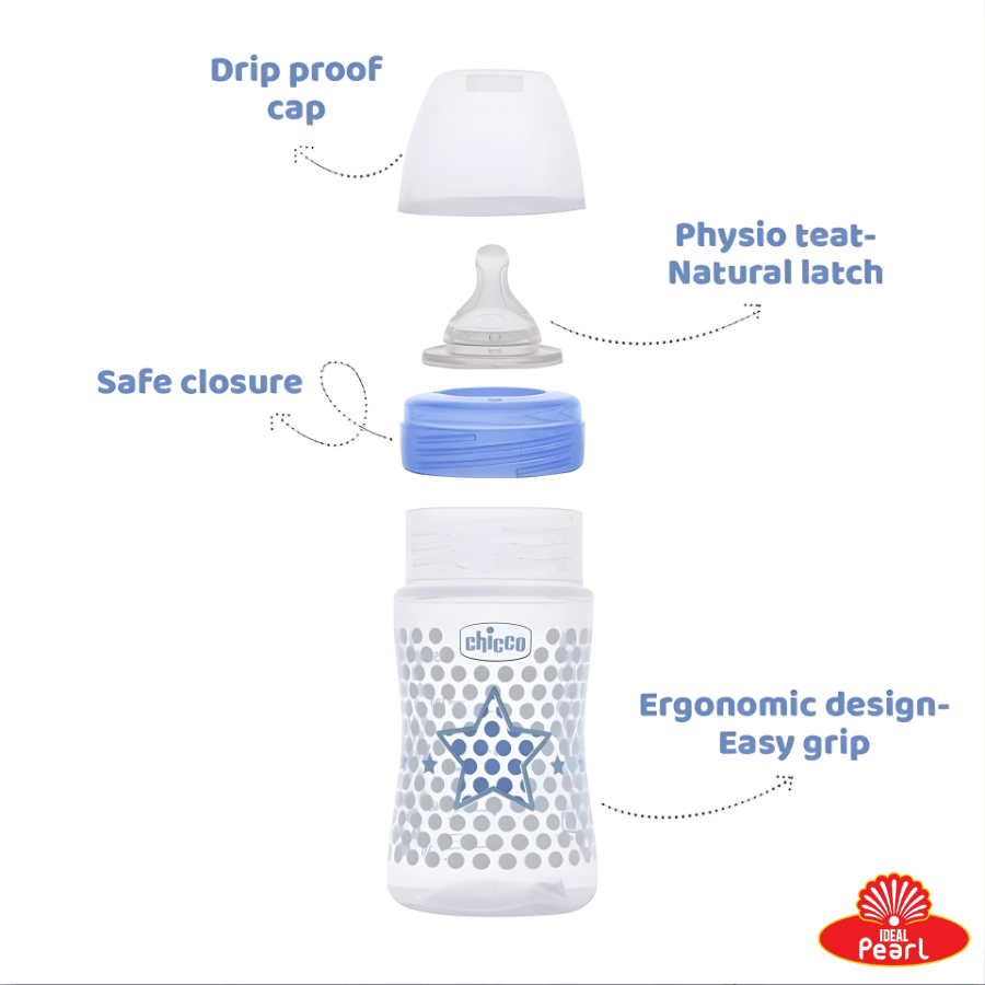 The Chicco Feeding Bottle Blue 150ml is designed for easy and comfortable feeding. Made from high-quality, safe materials, it features an anti-colic nipple to reduce discomfort and ensure smooth milk flow. Its ergonomic shape makes it easy to hold for both parents and babies, while the durable design ensures long-lasting use. Ideal for everyday feeding needs.