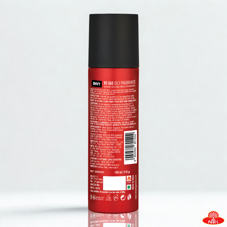 Envy Fiery is a bold and energetic body spray crafted for those who love a powerful, long-lasting fragrance. It opens with vibrant fresh notes blended with warm spicy tones, giving an intense and confident aroma. Its deodorizing formula keeps you fresh, active, and odor-free all day, making it perfect for daily wear.