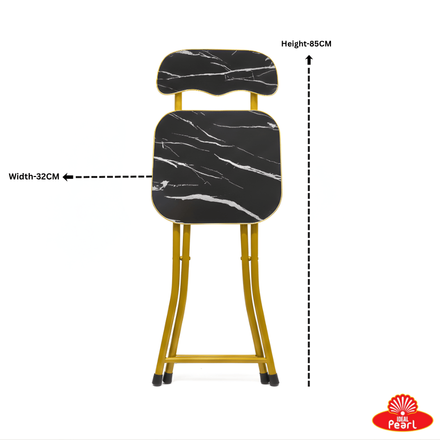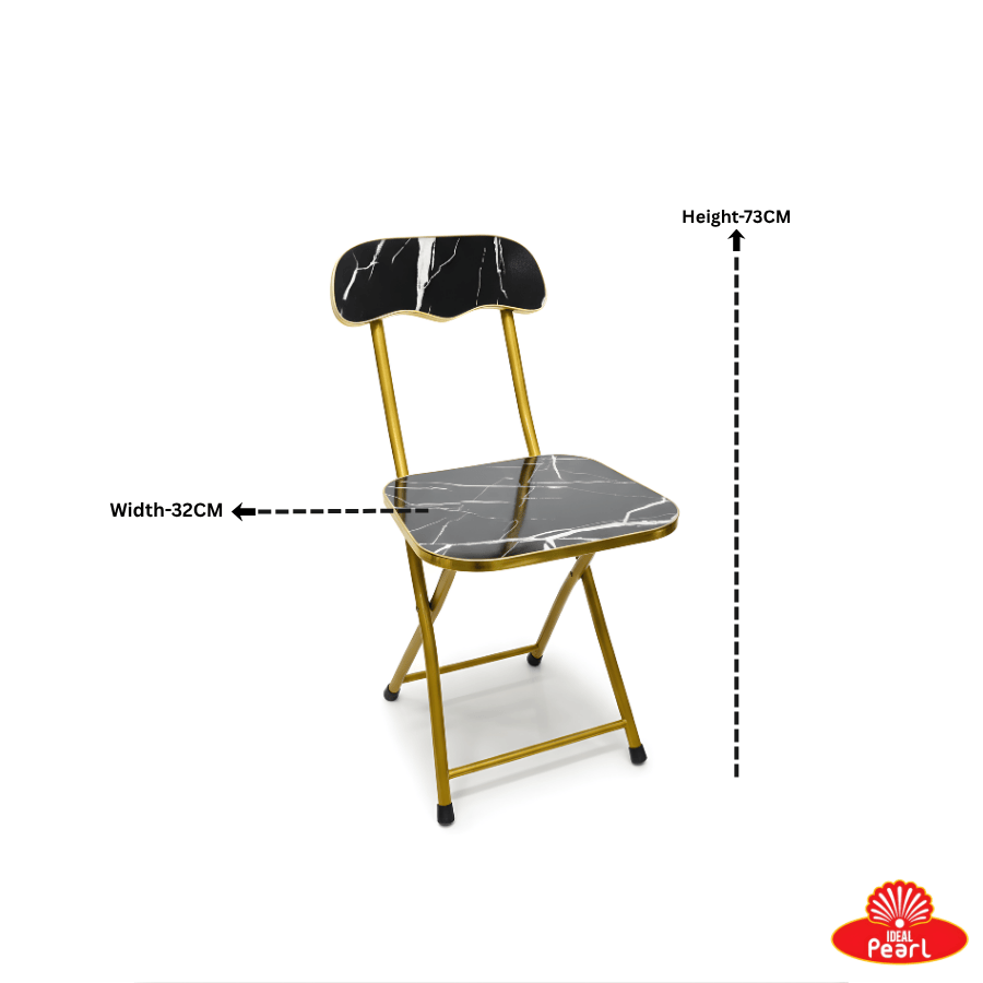 This elegant folding chair features a striking black marble-finish seat and backrest paired with a stylish gold-tone metal frame. Lightweight yet sturdy, it offers comfortable seating with a premium look. Its foldable design makes it easy to store and carry, perfect for homes, offices, events, and extra seating needs. A modern, classy, and practical addition to any space.