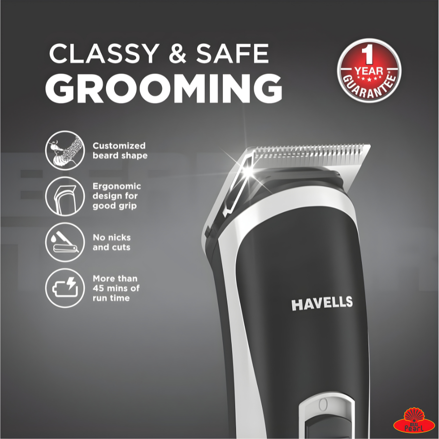 The Havells Beard Trimmer Bt2111 is a budget-friendly grooming tool designed to make beard maintenance easy, precise, and comfortable. It’s a corded + cordless rechargeable trimmer that combines flexibility with everyday convenience — you can use it on the go without a cord or plugged in if the battery runs low. Built with self-sharpening stainless-steel blades, it delivers a clean, even trim and lasts longer without frequent blade replacements. The trimmer supports a range of length adjustments (from as low as about 0.5 mm up to around 10–12 mm), enabling you to shape stubble or maintain a neatly groomed beard with accuracy. On a single charge, it offers up to 45 minutes of trimming time, enough for multiple grooming sessions between charges. Its ergonomic and lightweight design ensures a comfortable grip, and detachable washable combs make cleaning simple after every use. Overall, it’s a practical everyday beard trimmer for men who want reliable performance at an affordable price.