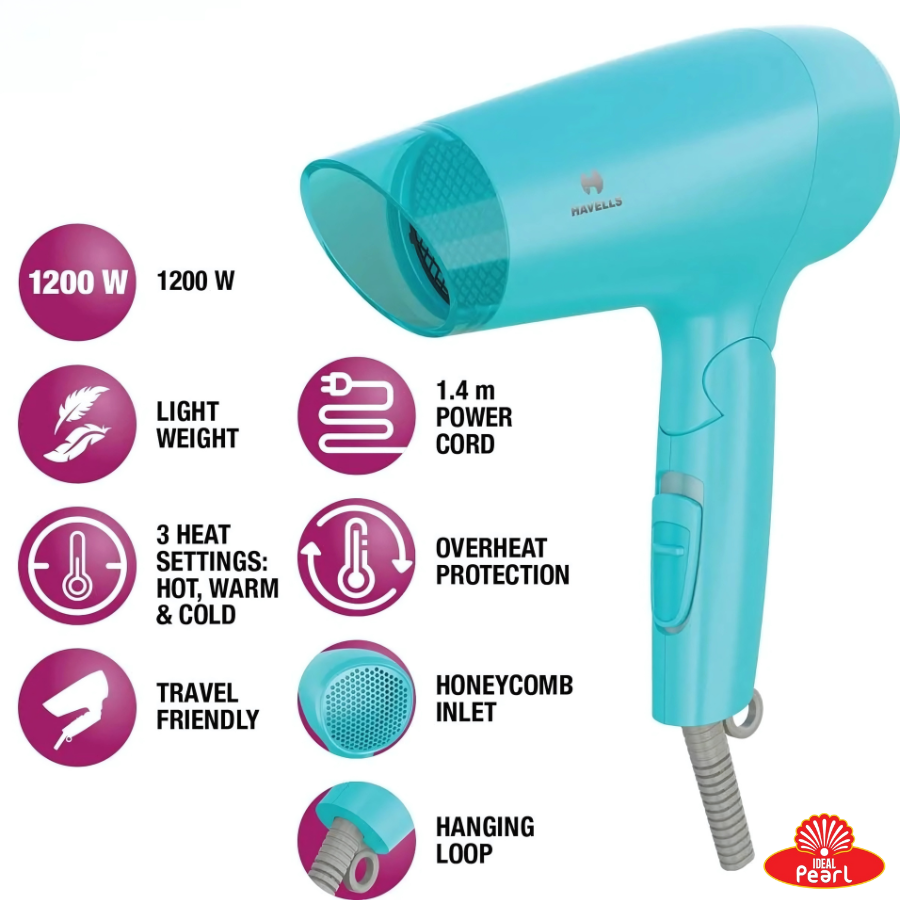 The Havells HD2222 Hair Dryer is a powerful yet compact styling tool designed to deliver salon-like drying and styling in the comfort of your home. With a 1200W motor, three adjustable heat settings, and a foldable design, it is a perfect blend of performance, safety, and convenience. Its lightweight body makes it travel-ready, while advanced safety features ensure worry-free use every day.