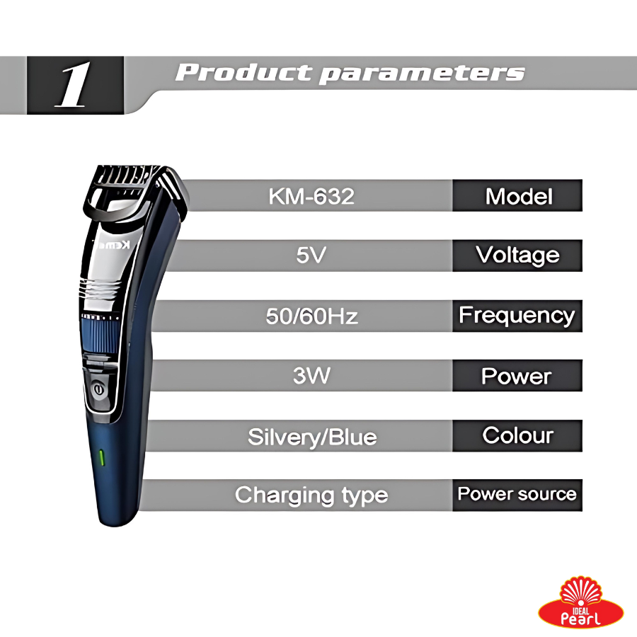 Kemei KM‑632 Rechargeable Cordless Hair Clipper & Trimmer: