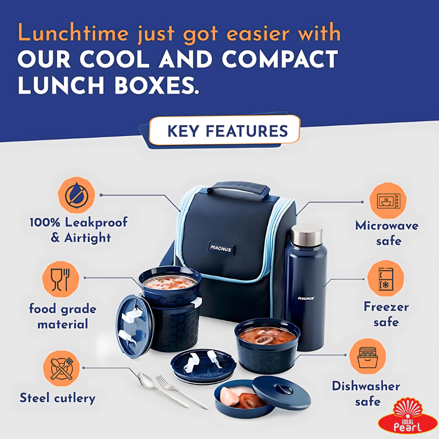 The Magnus NEO 5 Lunch Tiffin is a versatile and stylish lunch box designed for both kids and office-goers. Crafted with premium materials, it ensures durability and convenience for daily use.