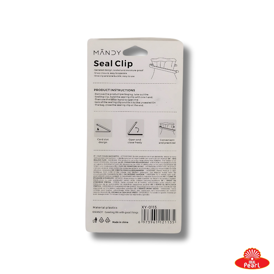 Seal in freshness with the MANDY Seal Clip Set. This pack of 3 high-quality plastic clips is designed to tightly close snack bags, cereal packets, coffee pouches, and more—preventing moisture and air from getting in. Each clip offers a strong grip and is easy to use with a simple press-and-lock mechanism. Compact and reusable, they help keep your pantry neat and your food fresher for longer. A must-have for every kitchen and ideal for travel or outdoor use as well.