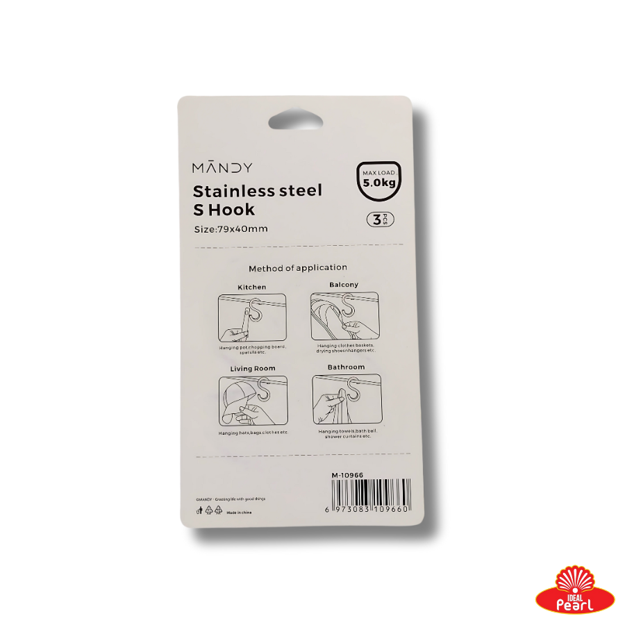 MANDY STAINLESS STEEL S HOOK 3PCS (M-10966)
