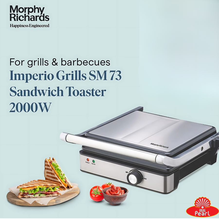 The Morphy Richards Imperio Series Sandwich Maker 73 Contact Grill (Model: 370073) is a high-performance kitchen appliance designed to cater to versatile cooking needs. With its robust 2000-watt power and advanced features, it ensures efficient and convenient cooking experiences.