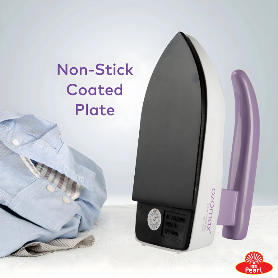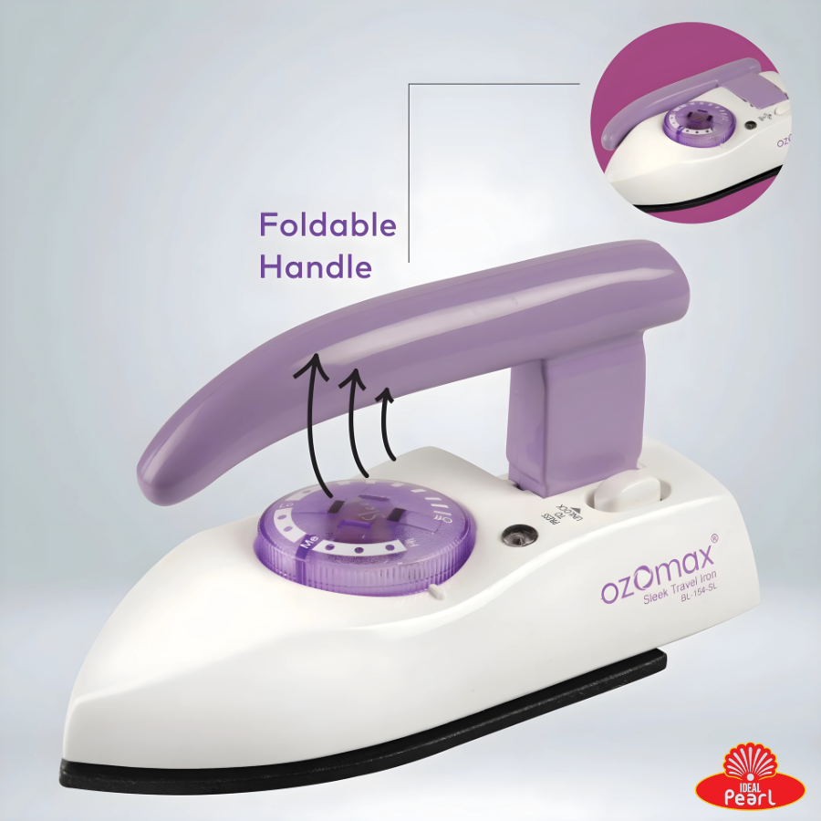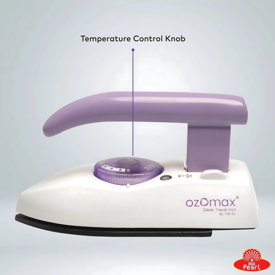 The OZOMAX Sleek Travel Iron BL-154-SL is specially designed for those who love wrinkle-free clothes even while traveling. Its compact, lightweight, and ergonomic design makes it easy to pack and carry. Equipped with a smooth soleplate, it glides effortlessly on all types of fabrics, giving crisp and neat results. The iron heats up quickly, saving time, and its dual voltage compatibility ensures it can be used worldwide. A comfortable grip handle and efficient temperature control add to its convenience. Whether for business trips, holidays, or daily use, this travel iron ensures you always look your best.