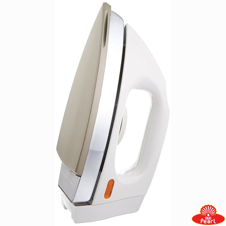 The Panasonic NI-100DX is a 1000W cordless dry iron designed for efficient and hassle-free ironing. Its cordless feature offers enhanced mobility, allowing you to iron without the restriction of a cord. The iron features a non-stick silver soleplate that ensures smooth gliding over fabrics, reducing the risk of sticking or burning clothes. It also includes a pilot lamp that indicates when the desired temperature is reached, and a button slit design for easy ironing around buttons. The ergonomic grip handle provides comfortable handling during use.