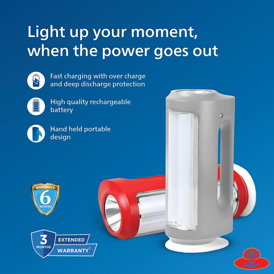 The Philips Helio Rechargeable LED Lantern is a reliable and energy-efficient lighting solution designed for both indoor and outdoor use. With its sleek red and grey body, this lantern combines portability with performance, making it ideal for power cuts, travel, camping, or emergency use.