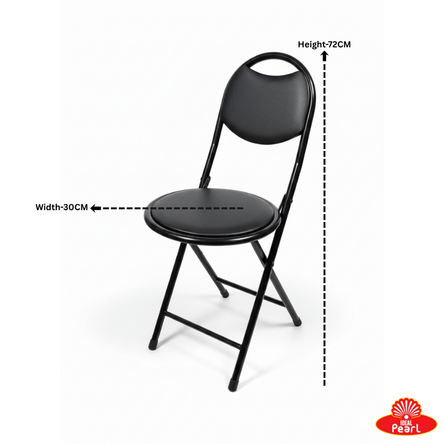 The Round Folding Black Chair is a sturdy and comfortable seating option designed for everyday use. It features a round padded seat and cushioned backrest, offering good support during long sittings. The durable metal frame ensures stability, while its foldable design makes it easy to carry, store, and transport. Sleek and compact, it’s ideal for home, events, gatherings, and outdoor use.