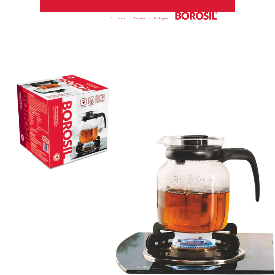 The Borosil Carafe with Strainer in Lid (1L) is a versatile and elegant addition to your kitchenware, designed to enhance your beverage experience.Crafted from 100% borosilicate glass, this carafe is both stylish and functional. Its flameproof design allows for direct use on gas stoves and hot plates, making it ideal for brewing and serving hot beverages like tea and coffee. The detachable strainer integrated into the lid ensures smooth pouring by filtering out tea leaves or coffee grounds.