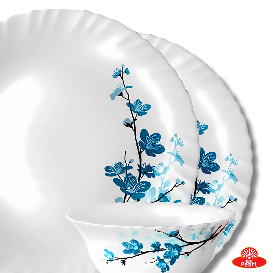 Add a touch of elegance to your dining table with the Borosil Larah Fluted Dinner Set in the charming Mimosa pattern. Crafted from toughened opal glass, this set is chip-resistant, non-porous, and hygienic—perfect for everyday use or special occasions. The lightweight design ensures ease of handling, while the vibrant yellow floral prints enhance the aesthetic appeal of your meals. Microwave-safe and dishwasher-safe, this 19-piece set blends functionality with beauty.