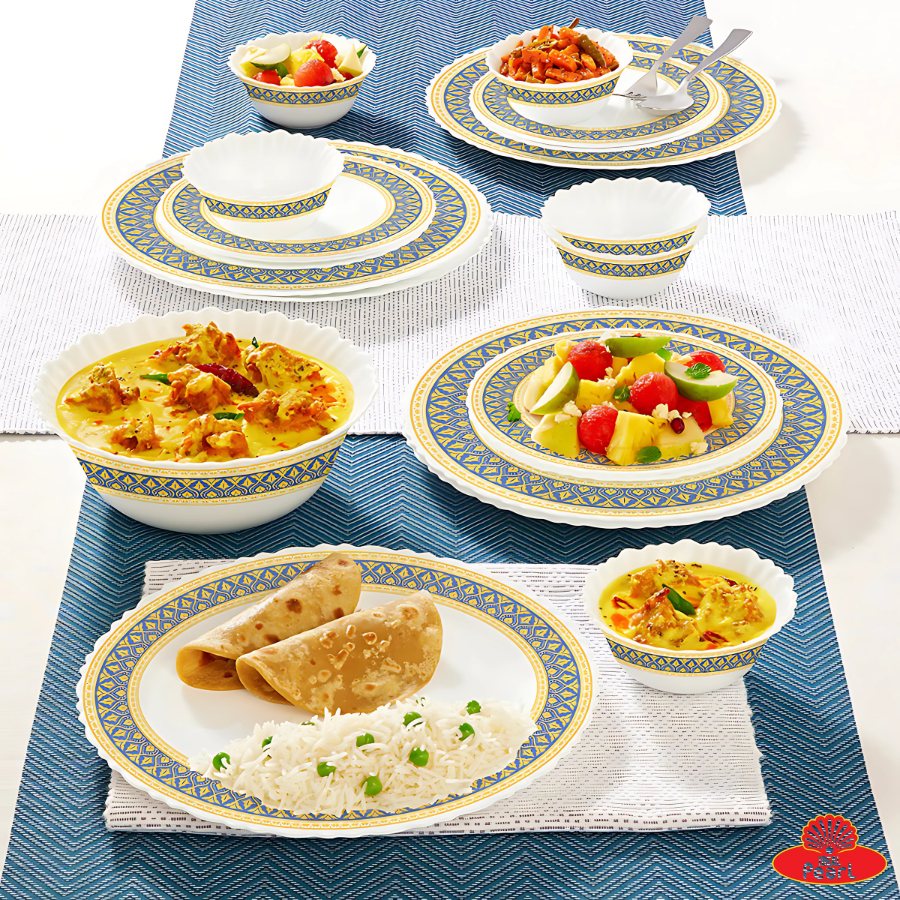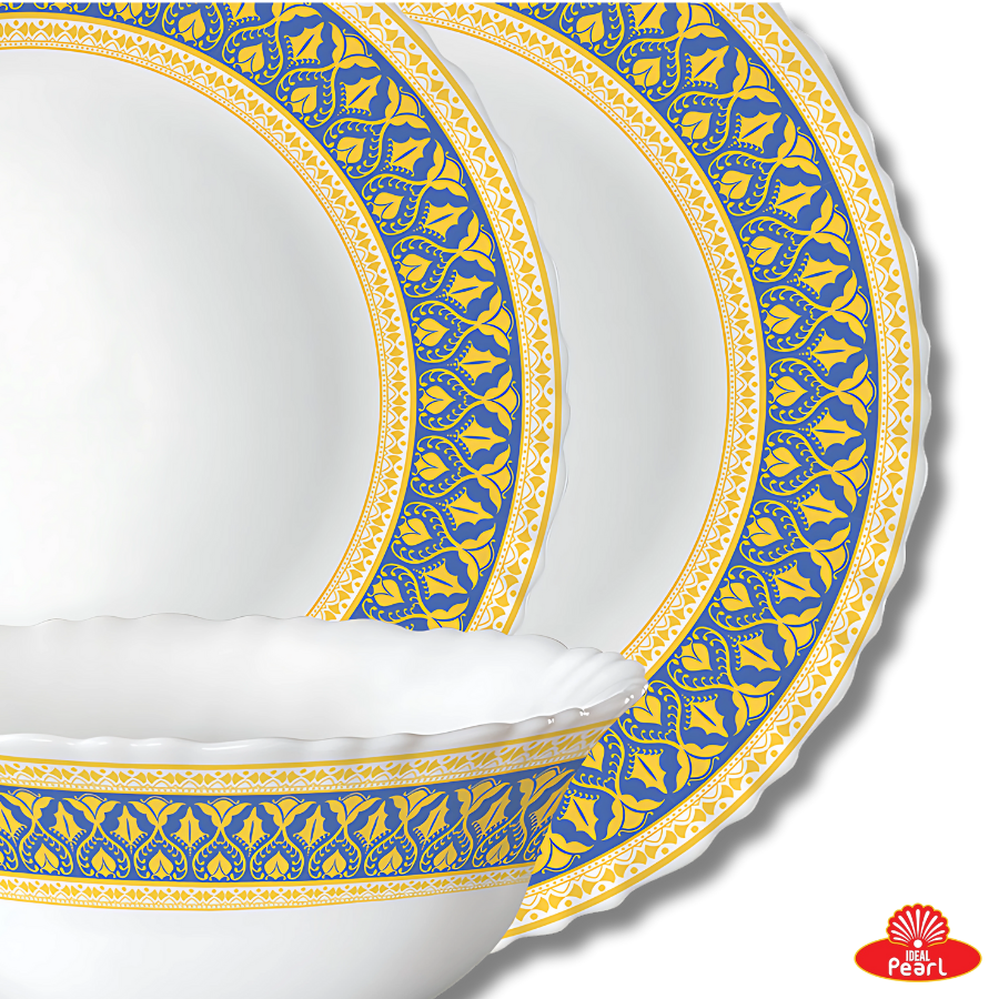 Make every meal feel like a celebration with the Borosil Larah Fluted Dinner Set in the Regal pattern. Designed with elegant detailing and classic fluted edges, this set brings sophistication to your dining table. Made from toughened opal glass, it is extra-strong yet lightweight, chip-resistant, and non-porous—ensuring long-lasting hygiene and beauty. The Regal design showcases a rich and timeless motif, ideal for both everyday use and festive gatherings. Safe for use in the microwave and dishwasher, it offers convenience without compromising on style.