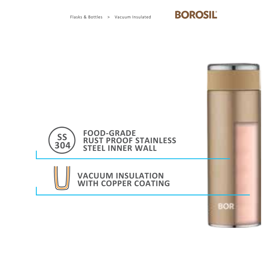 The Borosil Hydra Travelsmart Flask is a stylish and practical vacuum-insulated bottle designed to keep your beverages at the desired temperature while you're on the move. Available in capacities of 200 ml, 260 ml, and 360 ml, it caters to various hydration needs.