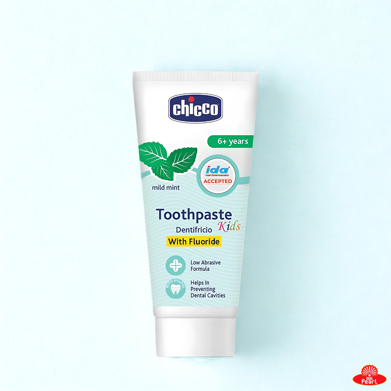 Chicco Mild Mint Toothpaste 70g is specially formulated for children aged 6 years and above to support daily oral hygiene with gentle yet effective care. It contains age-appropriate fluoride that helps strengthen tooth enamel and protect against cavities, while xylitol works to reduce bacteria and prevent tooth decay.