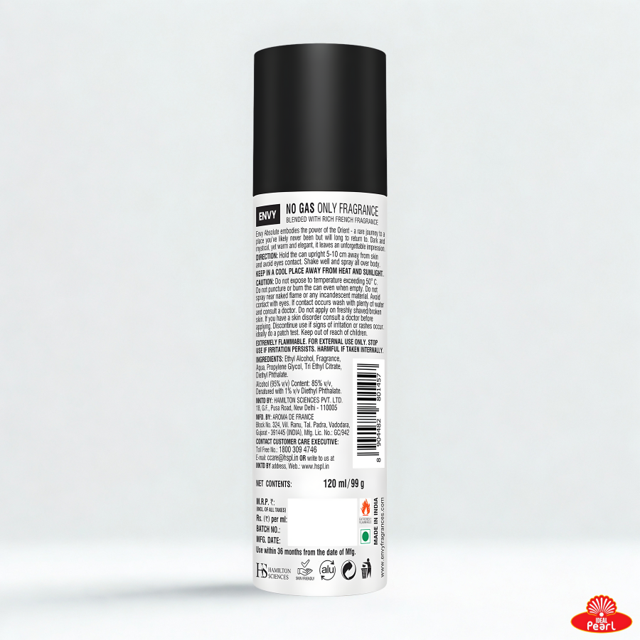 Envy Absolute Body Spray 120ml is a bold and refreshing fragrance crafted for long-lasting confidence. It opens with vibrant citrus and aromatic notes that instantly energize your senses, followed by a smooth blend of spicy and woody tones that add depth and character. Designed to keep you fresh throughout the day, this body spray delivers strong deodorizing protection and a premium scent experience. Perfect for daily wear, Envy Absolute brings a clean, masculine appeal that stays with you from morning to night.