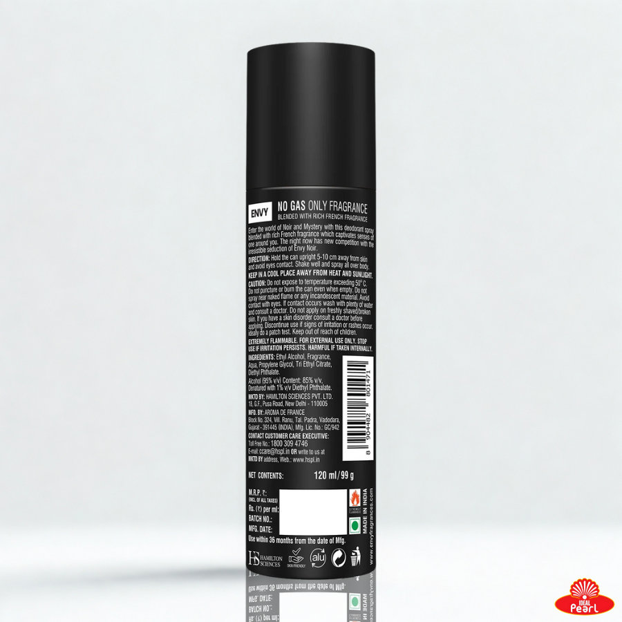 Envy Noir Body Spray 120ml is a bold and captivating fragrance crafted for those who enjoy a rich, long-lasting scent. It opens with fresh and aromatic notes that quickly blend into a warm, masculine heart, giving you an aura of confidence throughout the day. Its powerful deodorizing formula keeps you feeling fresh, while the deep, intense fragrance adds a touch of sophistication to your personality. Perfect for daily wear, Envy Noir offers a striking blend of freshness and charm that leaves a memorable impression wherever you go.