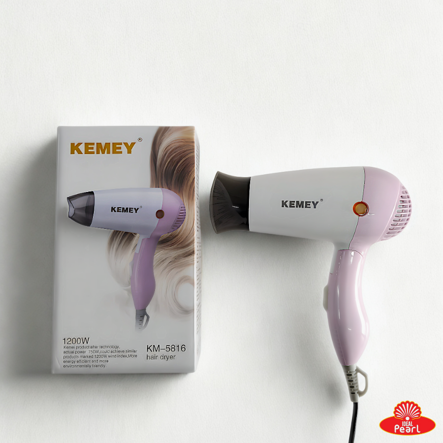 The KEMEY KM‑5816 Hair Dryer is a quality compact dryer powered by a 1200 W motor, delivering a balanced airflow suitable for daily home use.