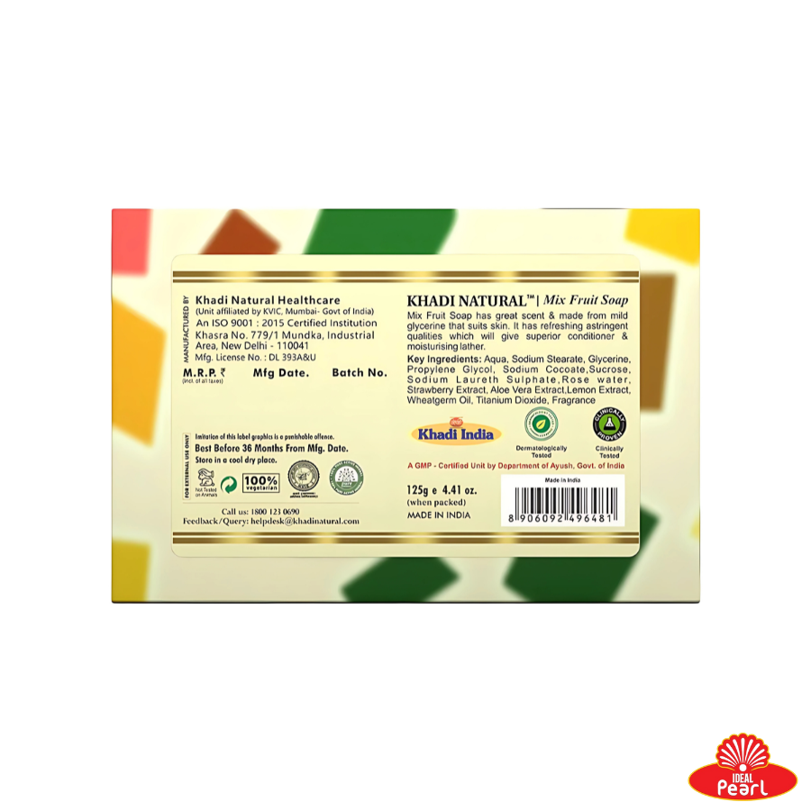 KHADI NATURALS Mix Fruit Soap Handmade – 125g is a refreshing herbal bath soap infused with the tropical aroma of pineapple. Enriched with natural oils and glycerin, it deeply cleanses, moisturizes, and revitalizes the skin, leaving it soft and supple. Its fruity fragrance uplifts the senses, while the gentle formulation is suitable for daily use on all skin types. Handcrafted using traditional methods, it contains no harsh chemicals, making it a safe and skin-friendly choice.