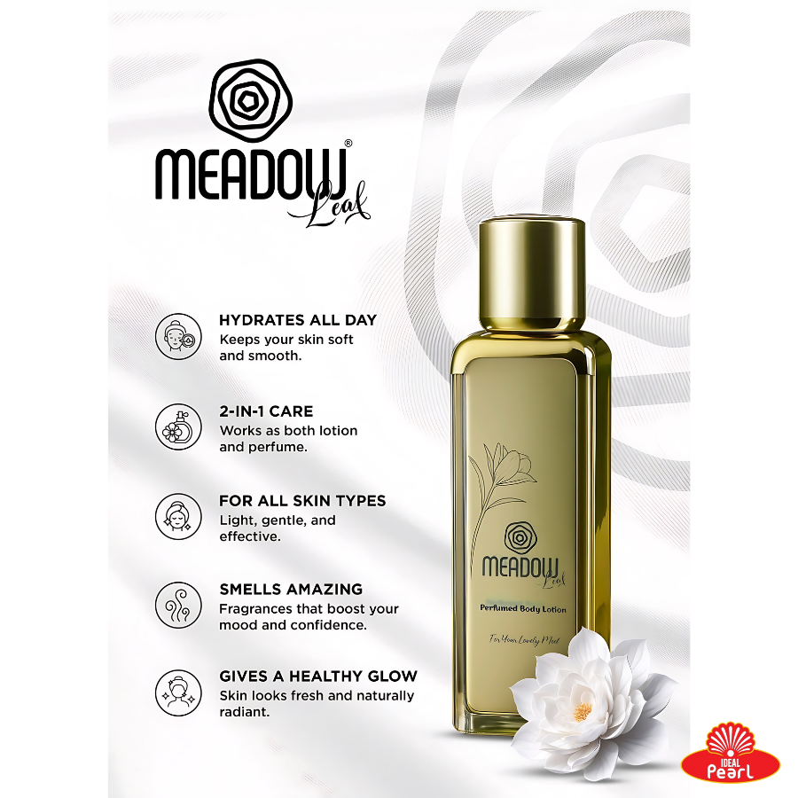 Meadow Leaf Marva Perfumed Body Lotion is a luxurious blend of skincare and fragrance designed to pamper your skin while uplifting your senses. Formulated with rich moisturising agents, it nourishes and hydrates deeply, leaving the skin soft, smooth, and delicately scented. Compact and travel-friendly, the 50 ml bottle is perfect for daily use, on-the-go hydration, or as an elegant gift option.