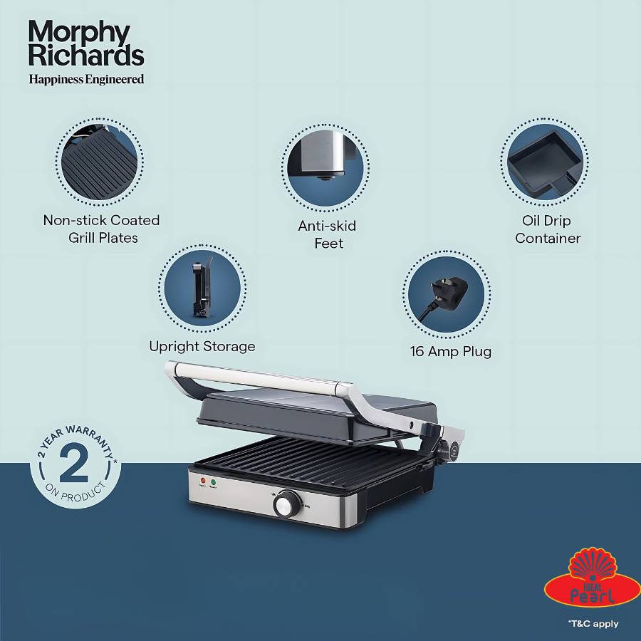 The Morphy Richards Imperio Series Sandwich Maker 73 Contact Grill (Model: 370073) is a high-performance kitchen appliance designed to cater to versatile cooking needs. With its robust 2000-watt power and advanced features, it ensures efficient and convenient cooking experiences.