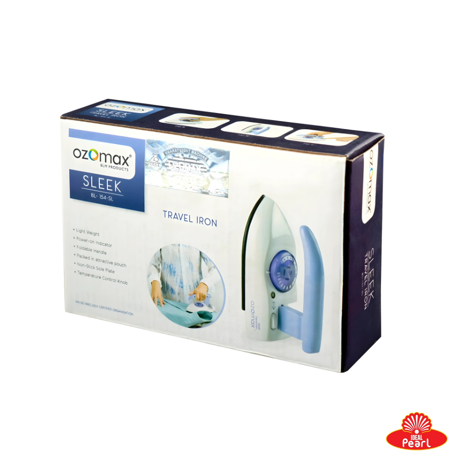The OZOMAX Sleek Travel Iron BL-154-SL is specially designed for those who love wrinkle-free clothes even while traveling. Its compact, lightweight, and ergonomic design makes it easy to pack and carry. Equipped with a smooth soleplate, it glides effortlessly on all types of fabrics, giving crisp and neat results. The iron heats up quickly, saving time, and its dual voltage compatibility ensures it can be used worldwide. A comfortable grip handle and efficient temperature control add to its convenience. Whether for business trips, holidays, or daily use, this travel iron ensures you always look your best.