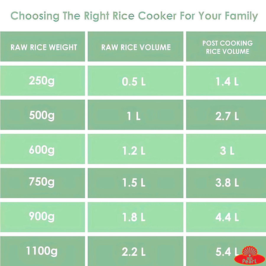 Capacity: 10 litres total; capable of cooking up to 2.5 kg of raw rice, suitable for serving large groups.