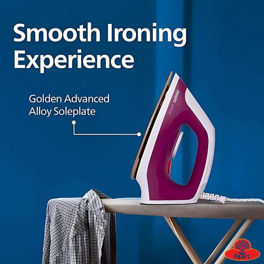 Experience effortless ironing with the Philips DuraEase Dry Iron DST6001/30, built for smooth performance and lasting durability. Powered by a 1000W heating element, it heats up quickly and delivers uniform heat for crisp, wrinkle-free clothes. The non-stick soleplate ensures smooth gliding over all fabrics, while the lightweight and ergonomic design makes ironing comfortable and convenient.